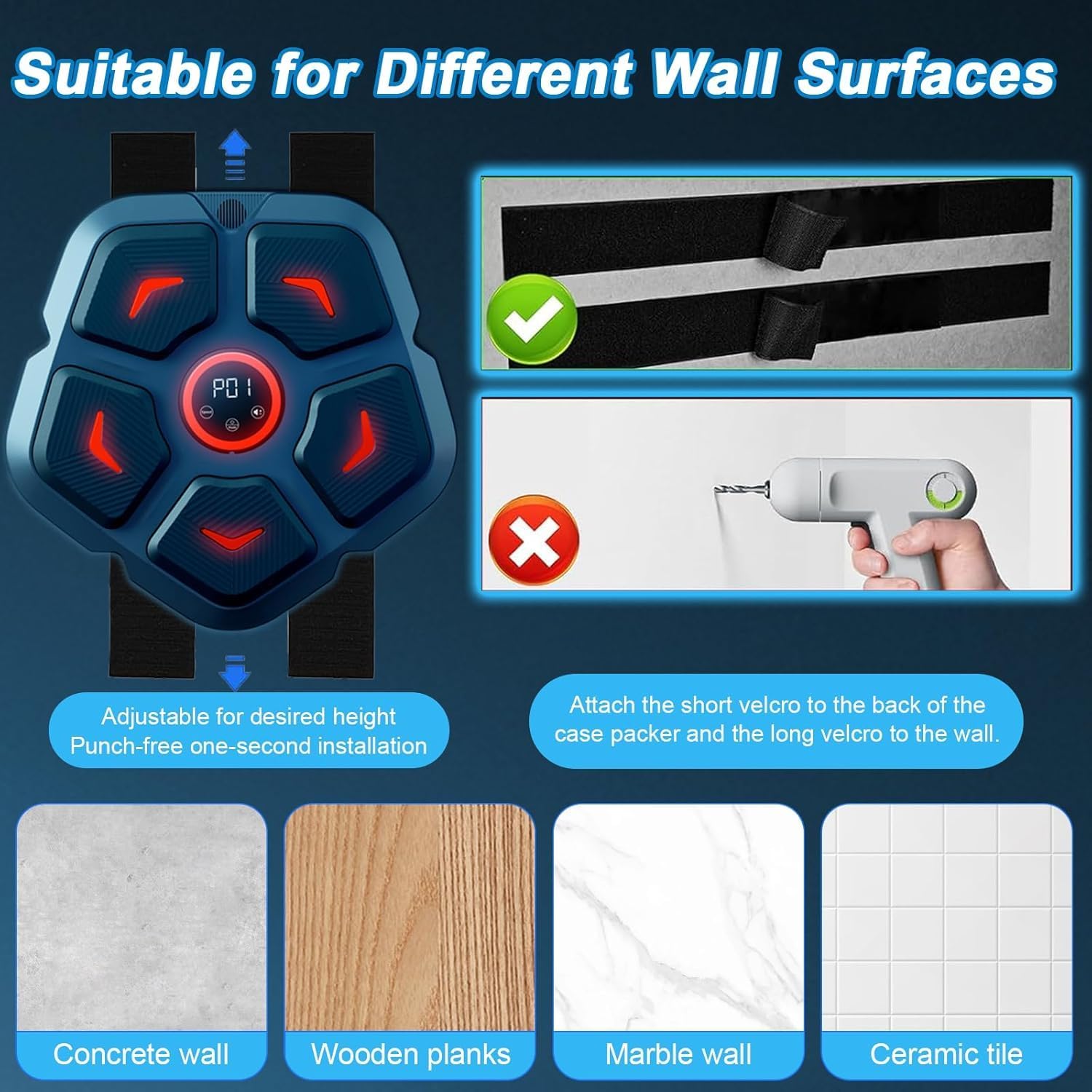 [ 𝗟𝗘𝗗 𝗗𝗶𝘀𝗽𝗹𝗮𝘆 & 𝗖𝗼𝘂𝗻𝘁𝗶𝗻𝗴 𝗙𝘂𝗻𝗰𝘁𝗶𝗼𝗻 ] : The Music Boxing Machine has LED indicators and digital counters that track your training progress and enhance your reaction speed and coordination with each punch, making your time fun.
